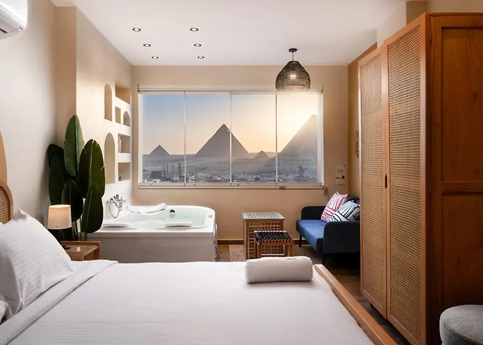 The 2-room Jacuzzi 2Bdr By The Historic Pyramids Apt6 Cairo apartment includes a patio and is located 3.4 km from the planned Grand Egyptian Museum. This spacious apartment features a Jacuzzi to ensure a more enjoyable stay.